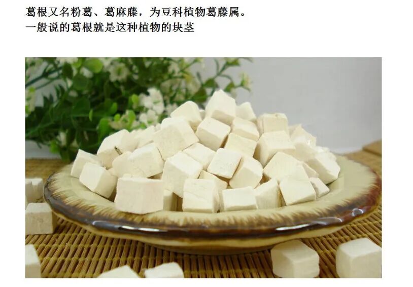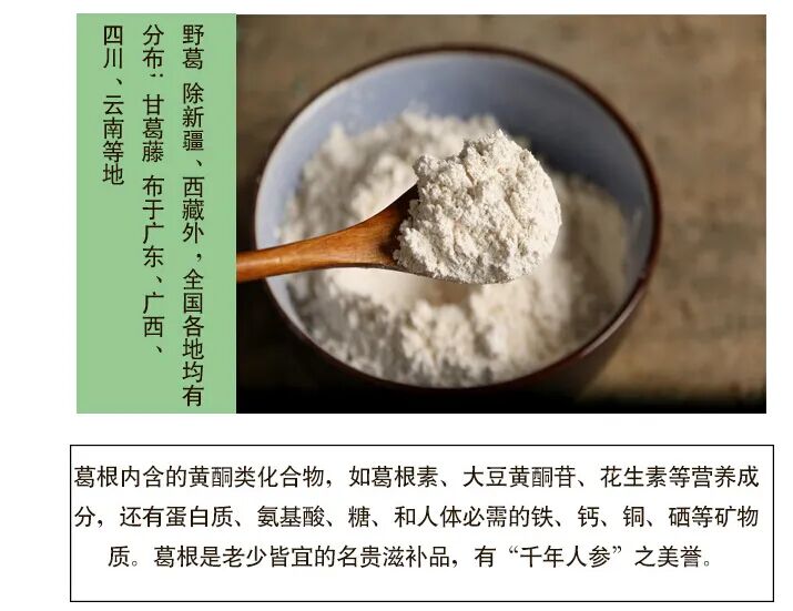 【主要成分】异黄酮成分葛根素、葛根素木糖甙、大豆黄酮、大豆黄酮甙及β-谷甾醇、花生酸【药性】性凉,味甘、辛。